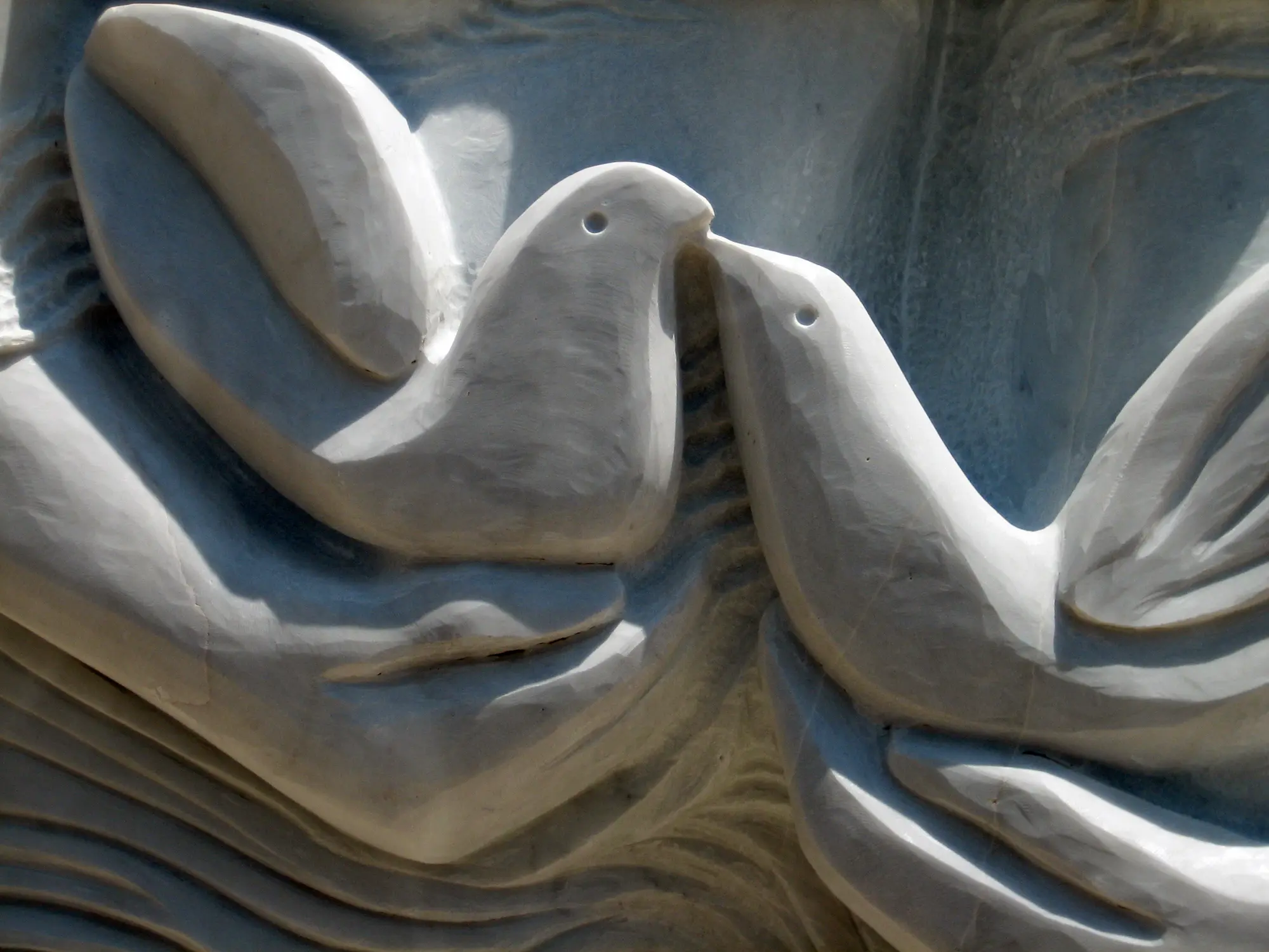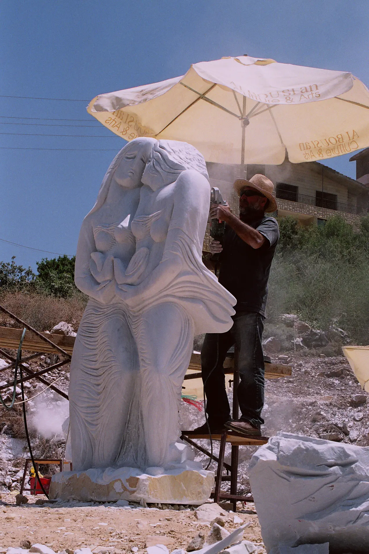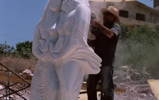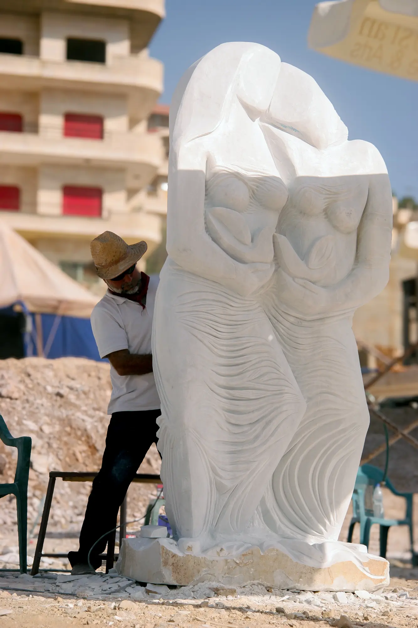 "فكرة عملي النحتي تقوم على الحوار مع الآخر من خلال تجسيد شخصيتين أنثويتين تحملان حمامتي سلام. في مقولة تركز على دور المرأة في صناعة السلام، بمواجهة الحروب التي يقودها عادة الرجال".