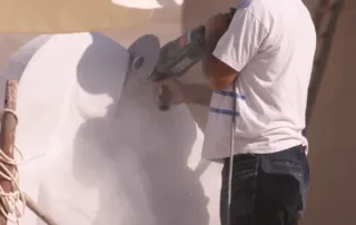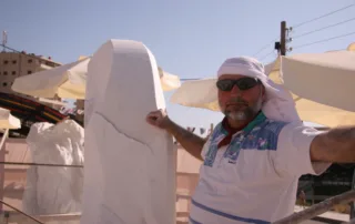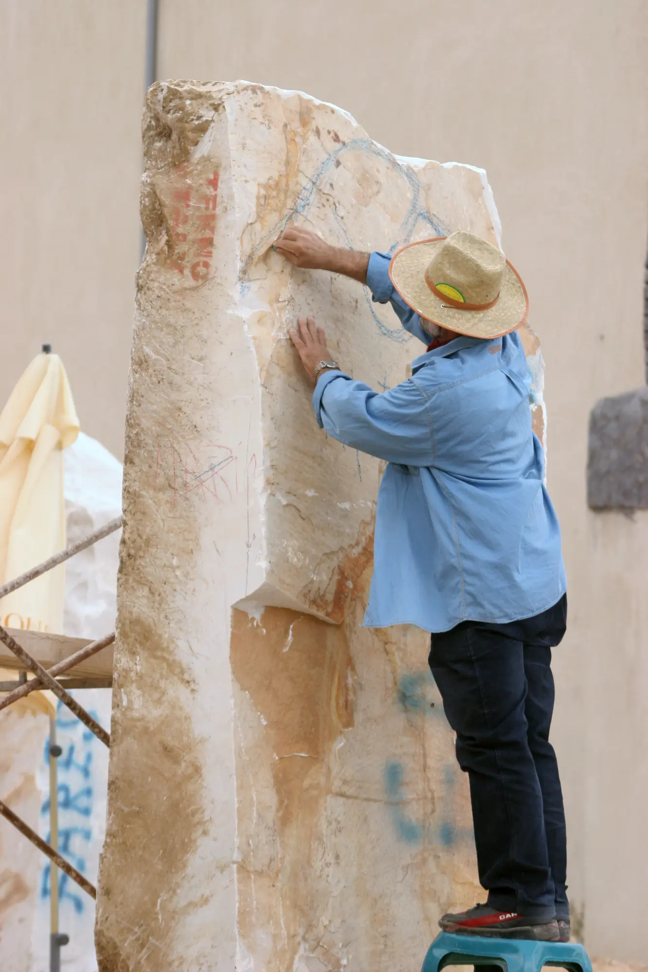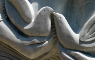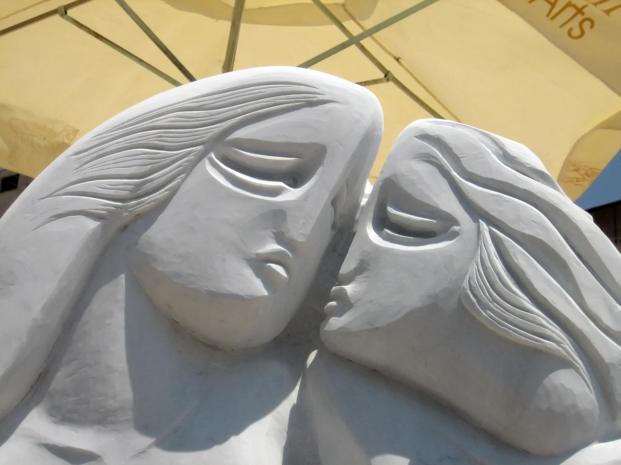 "فكرة عملي النحتي تقوم على الحوار مع الآخر من خلال تجسيد شخصيتين أنثويتين تحملان حمامتي سلام. في مقولة تركز على دور المرأة في صناعة السلام، بمواجهة الحروب التي يقودها عادة الرجال".