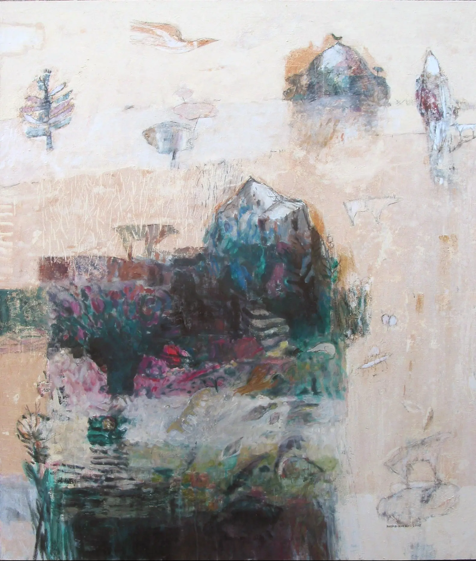 "في اللوحة مساحةٌ جميلةٌ، وعالم خاص يحارب البشاعة الموجودة في الكون، الألوان في وجه الأشكال البشعة، فسحة في ضيافة عالم آخر".