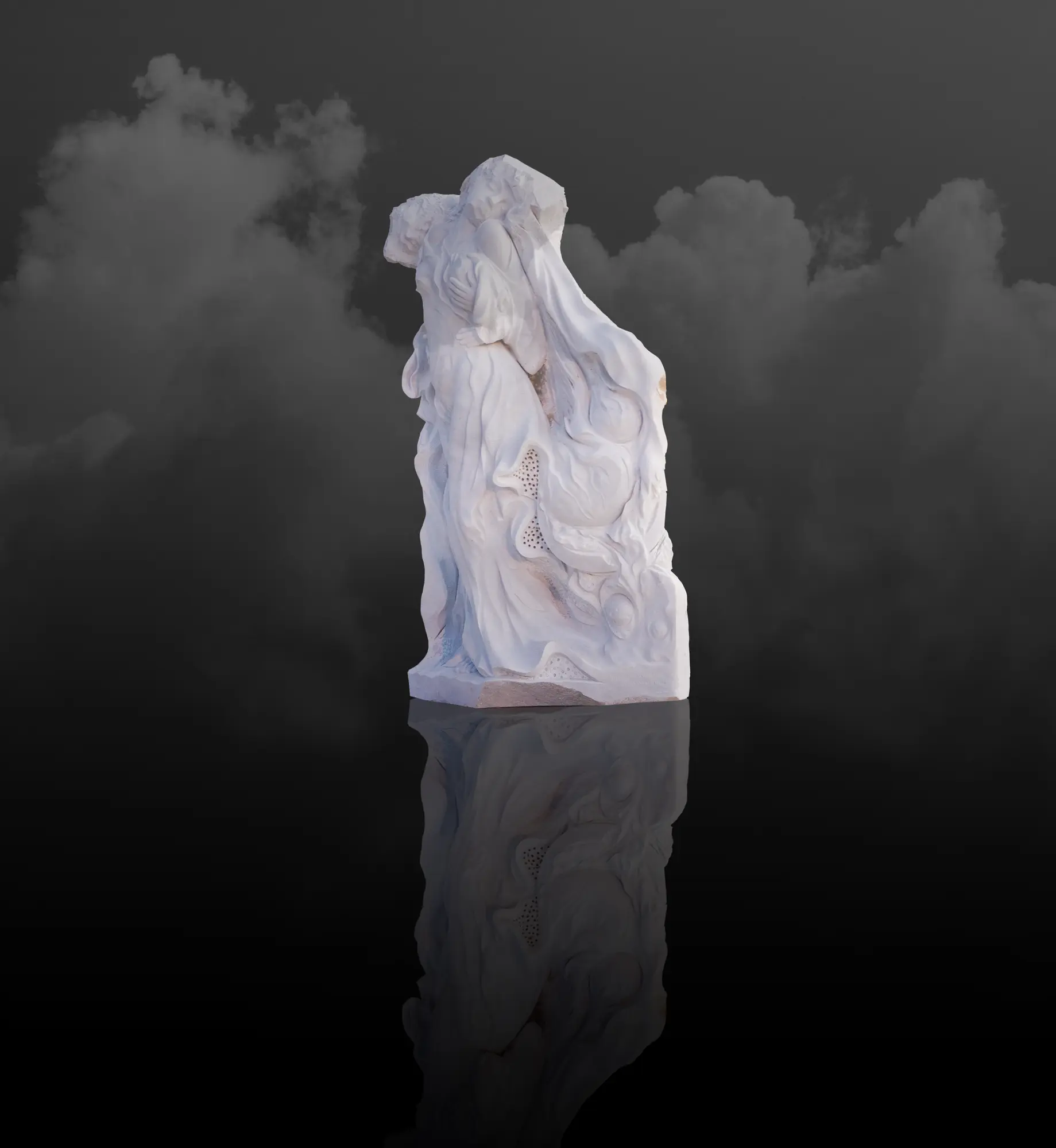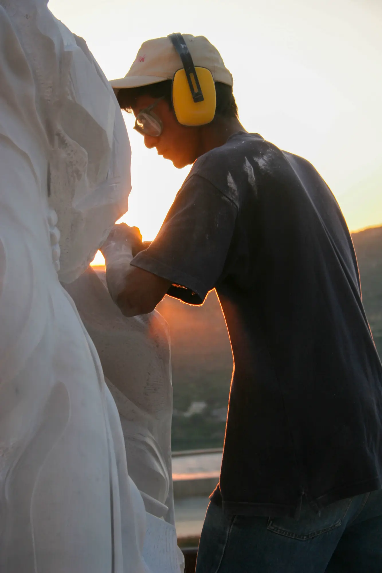 "عملي عبارة عن تمثال يمثل حب الأم لجنينها، الأمومة أسمى معاني الحب، الأم تحلم بطفلها، وأنا أرى أن المرأة هي التي تعطي الحياة".