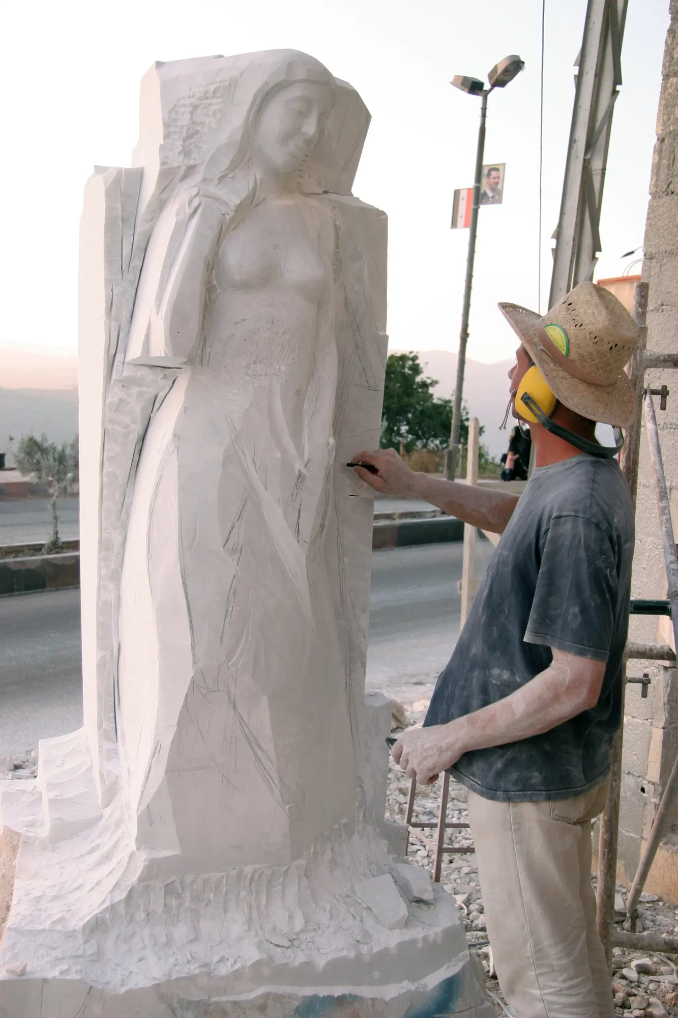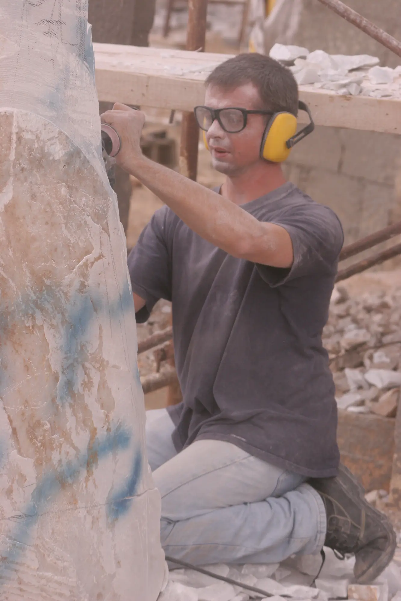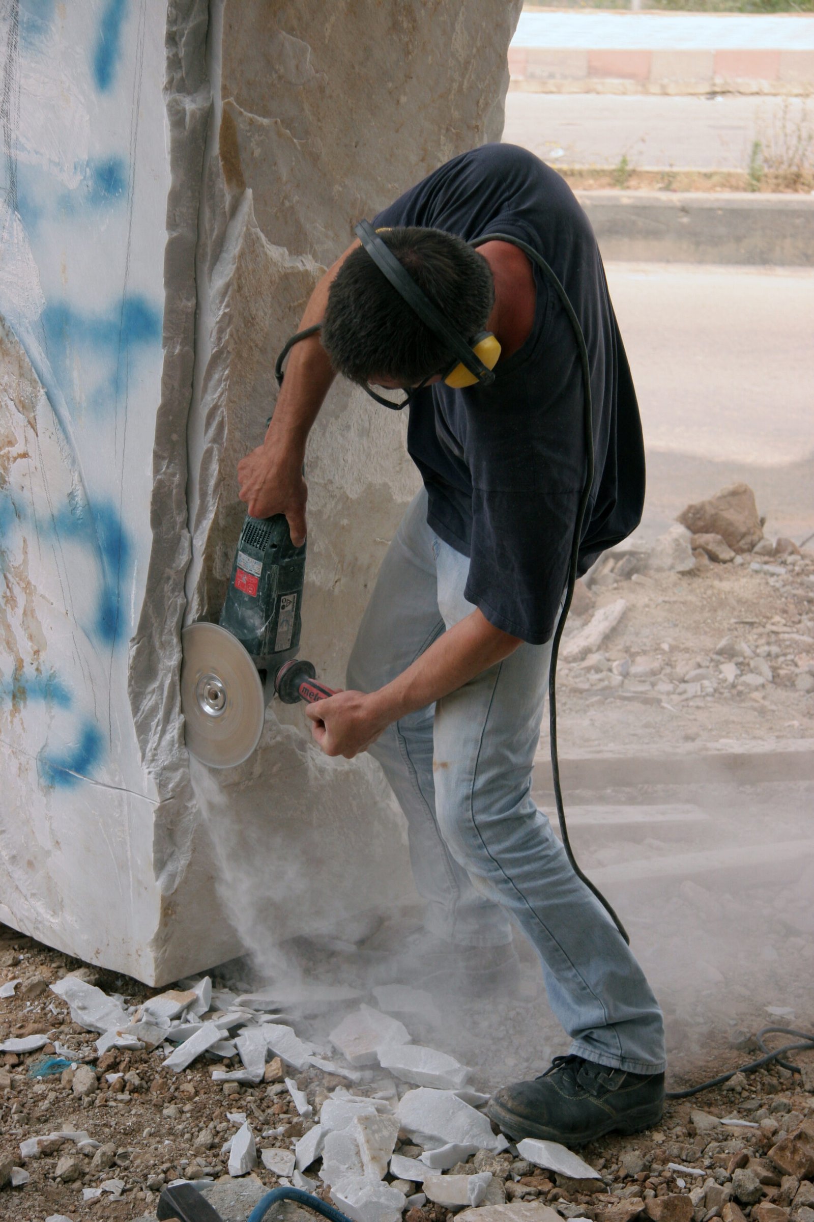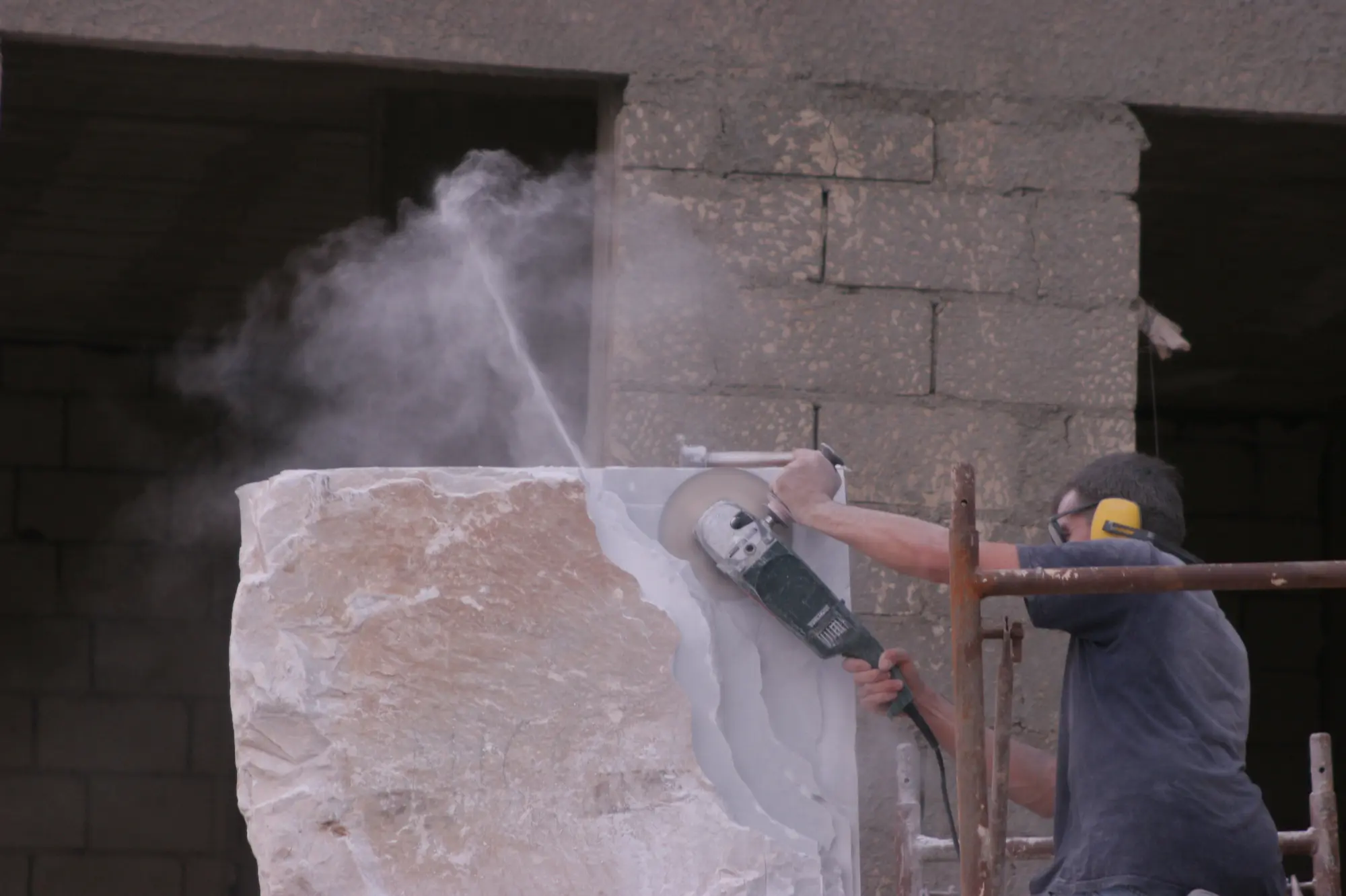 عمل في مختبر النحت”تماثيل فنية” لتنفيذ أعمال الرخام.