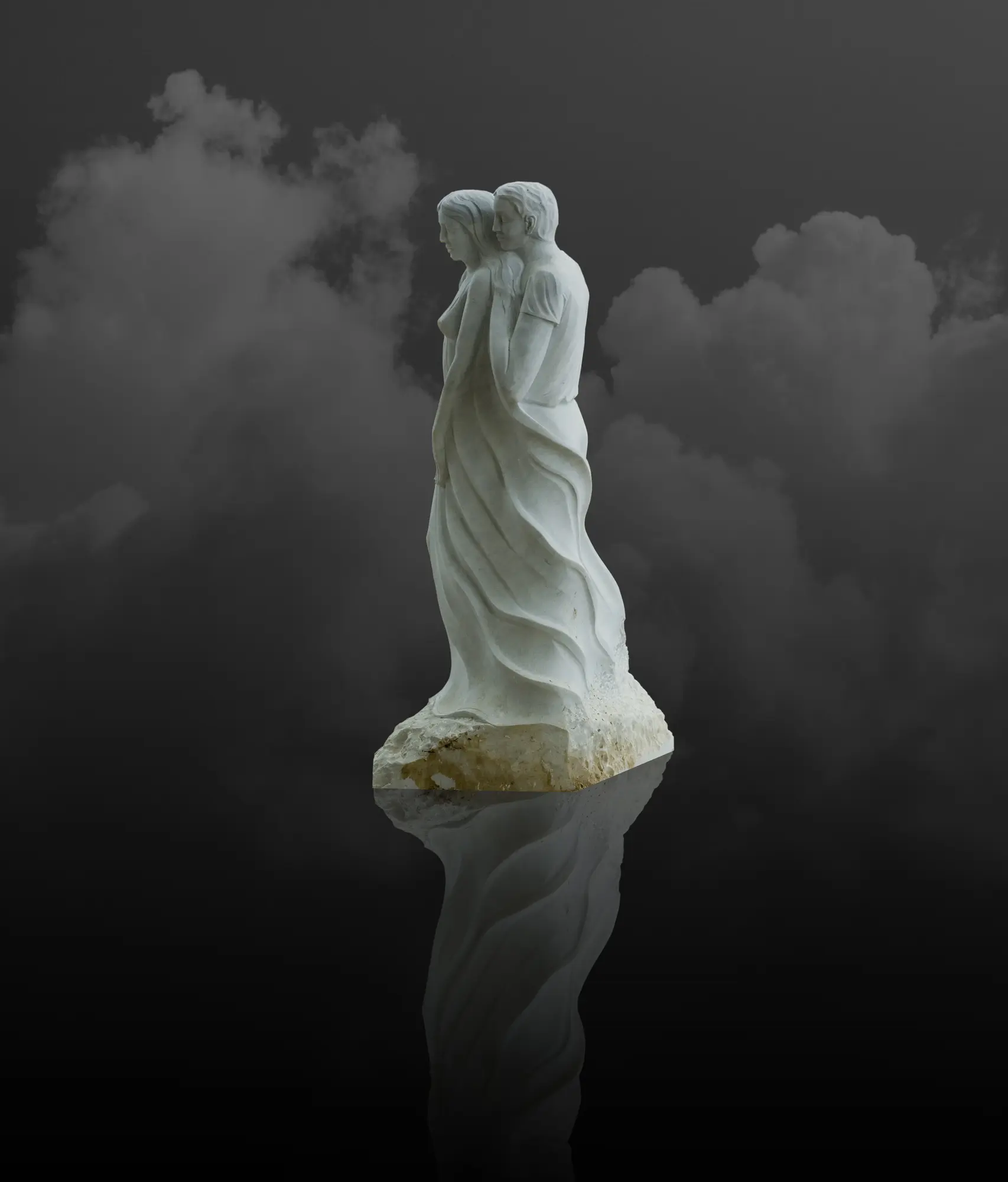 "معظم أعمالي تعبر عن الحب، أحاول من خلالها أن أنقل أدق التفاصيل الإنسانية وأكثرها تعبيراً، عملي هنا عبارة عن عاشقين اثنين، أركز على ملامح الوجه الذي يعبر عن حالات الفرح والحب. والطبيعة هنا تدفع الفنان إلى العطاء وإبراز أدق التفاصيل المؤثرة بالناس".