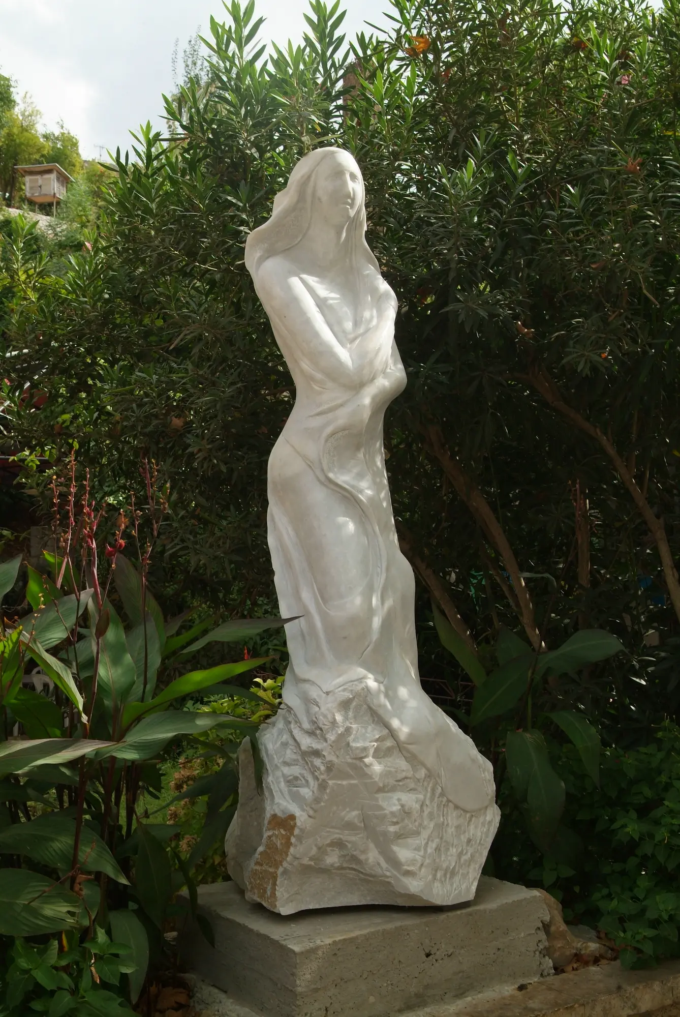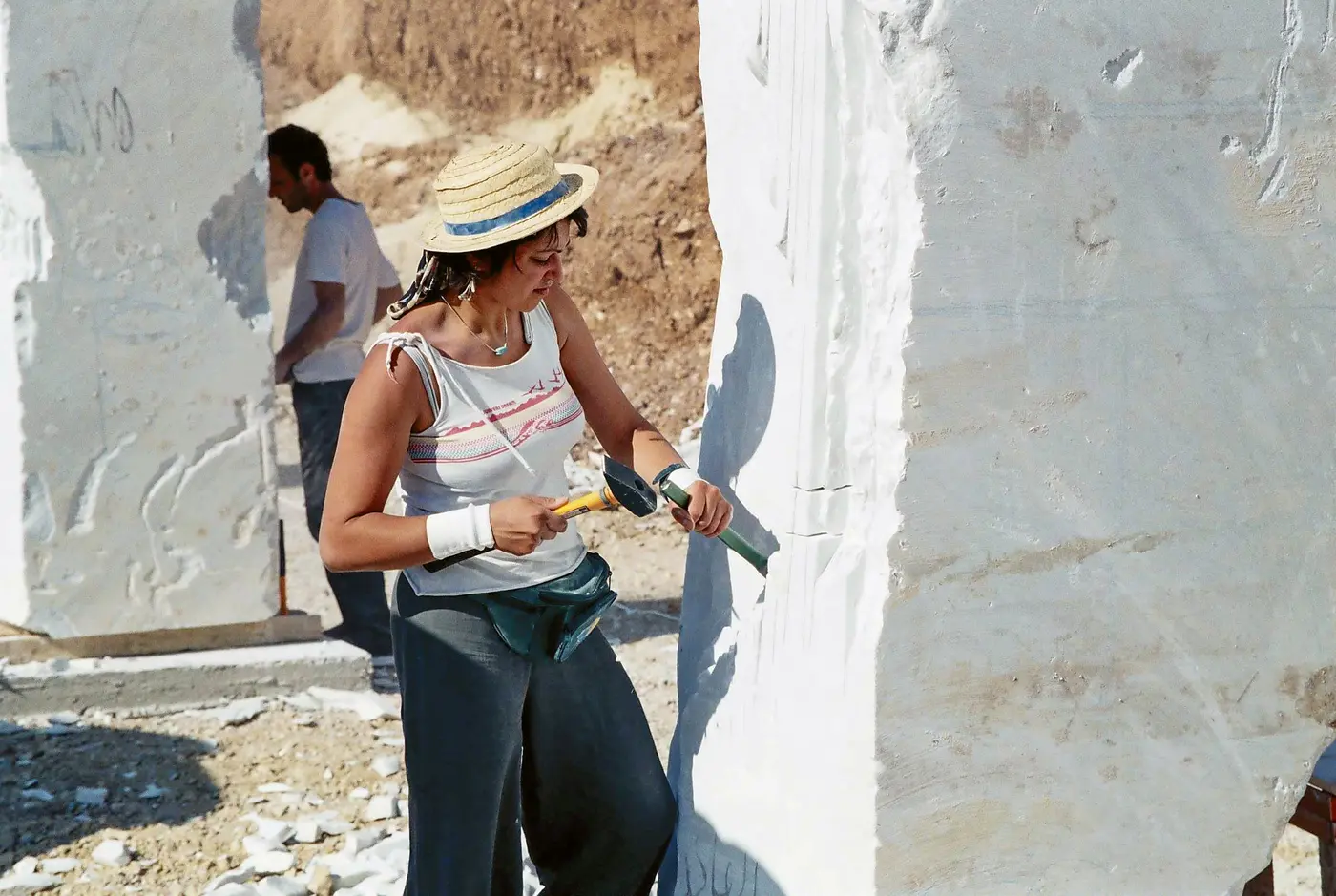"سواء كانت الكتل الحجرية صغيرة أم كبيرة، فإنها بنظري تملأ المكان كل المكان.. أحس أن النحت يملؤني ويناغم حواسي، يعانق مخيلتي ويطير معي لخارج العالم".